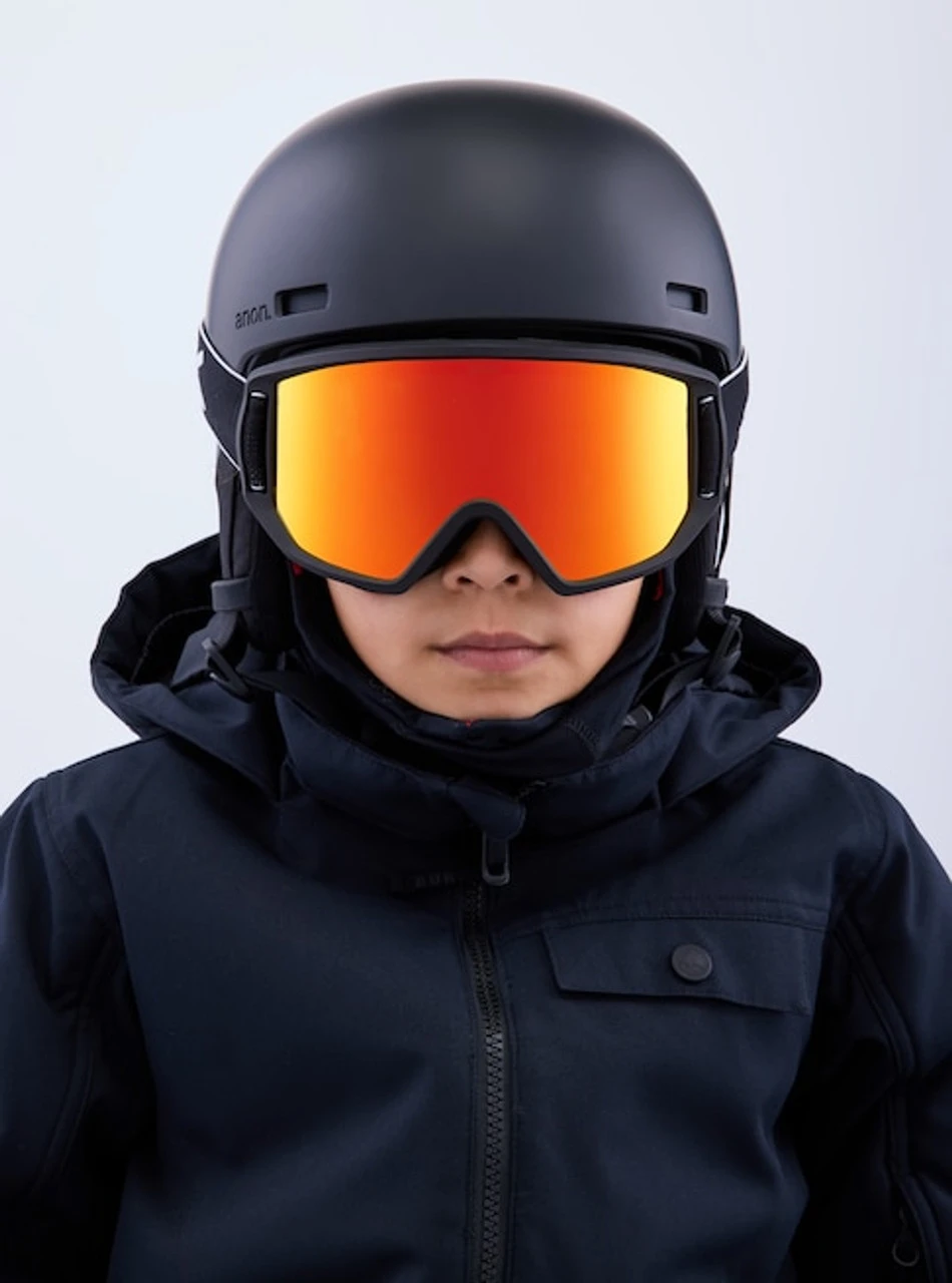 The kids’ Anon Relapse Jr. Goggles feature our exclusive magnetic face mask integration (MFI®) for seamless coverage from snow, wind, and sun when used with our compatible hoods and face masks. A cylindrical lens maximizes the field of view, while full-perimeter venting ensures maximum airflow for clear, fog-free clarity in all conditions. They are compatible for wearing over eyeglasses and include an MFI face mask and a microfiber bag for storage and lens cleaning.