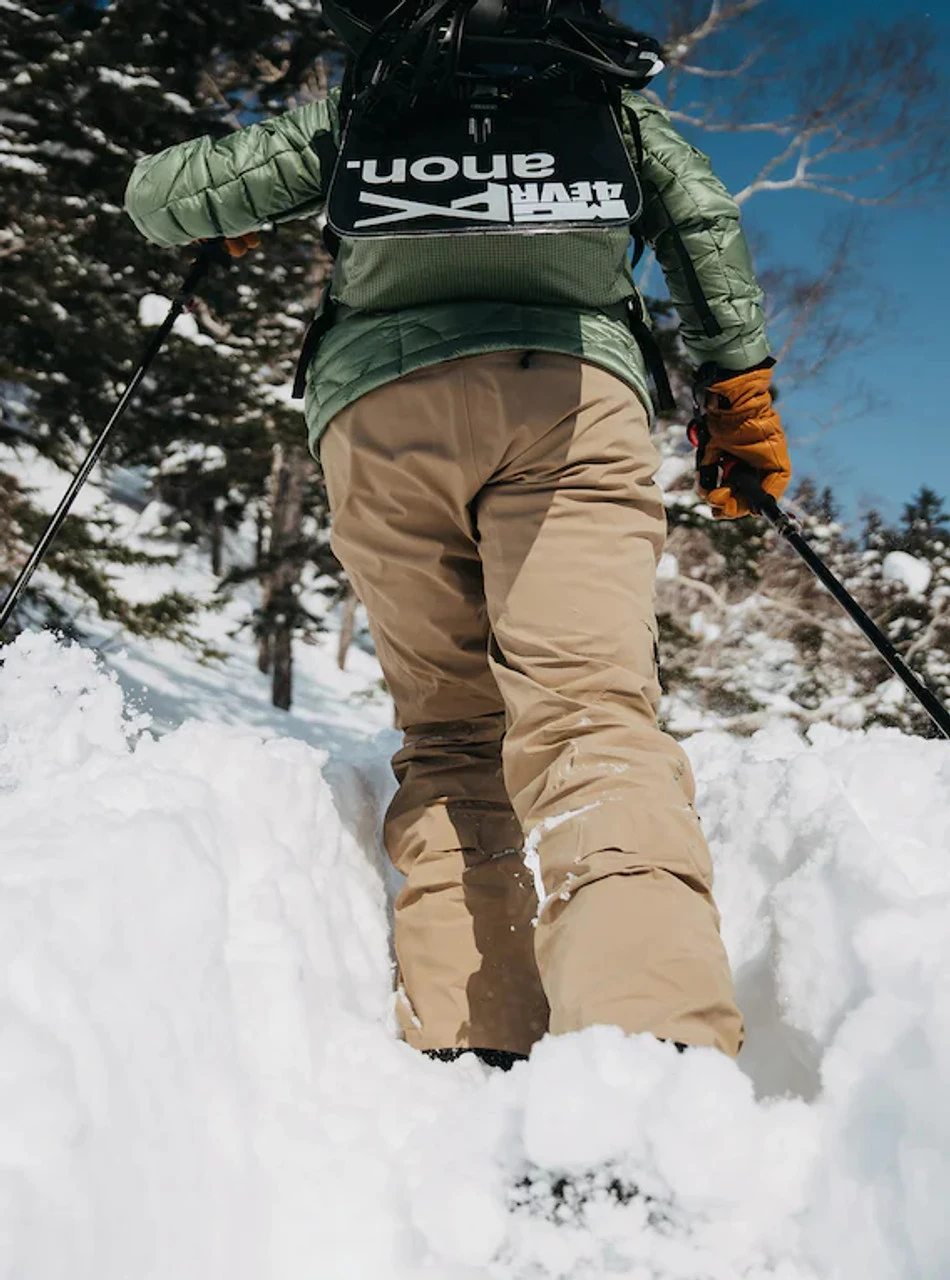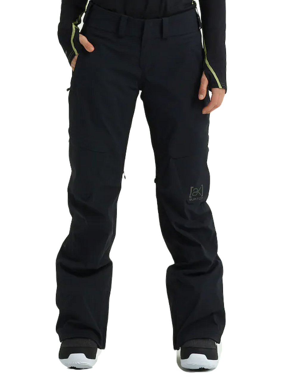 Lift access or self-ascent, the fully GORE-TEX seam taped stretch women’s Burton [ak] GORE-TEX Insulated Summit Pants is the one to wear for all-out riding, in any weather. The articulated women’s fit is loose enough to layer under during cold snaps but also drapes with the attractive shape of a contoured waist when worn with a hoodie in spring. Inner thigh vents dump heat when hiking, while tough materials survive triple-digit seasons. A thigh pocket stashes nuts, berries, a multi-tool, and a phone.