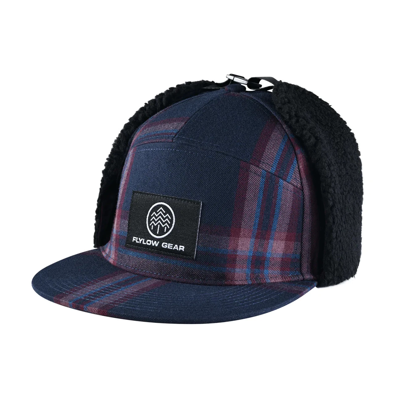 Buck hunting or après ski? Either way works with the Walleye Cap, a buffalo plaid cap with a brim and fleece-lined earflaps that fold up or down.