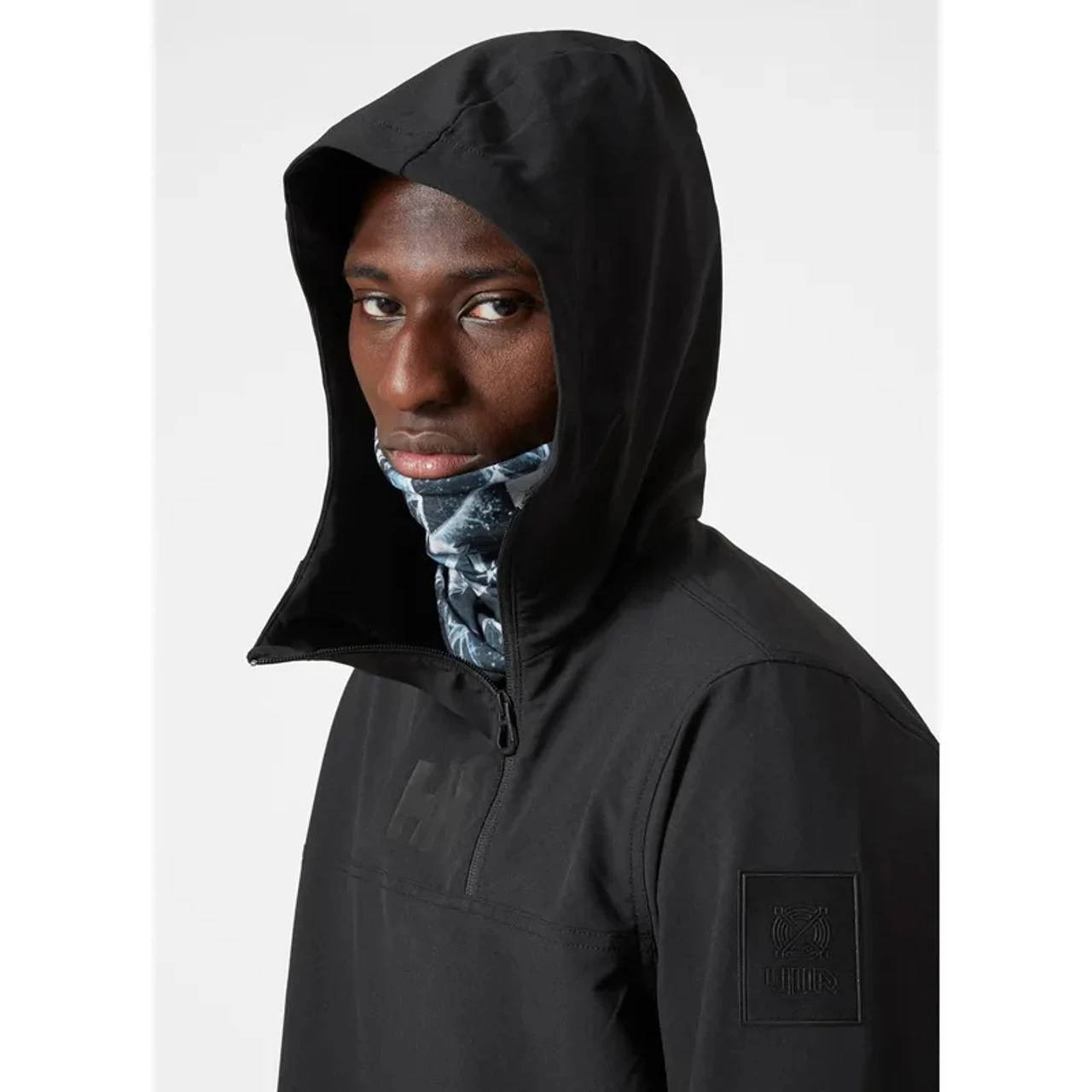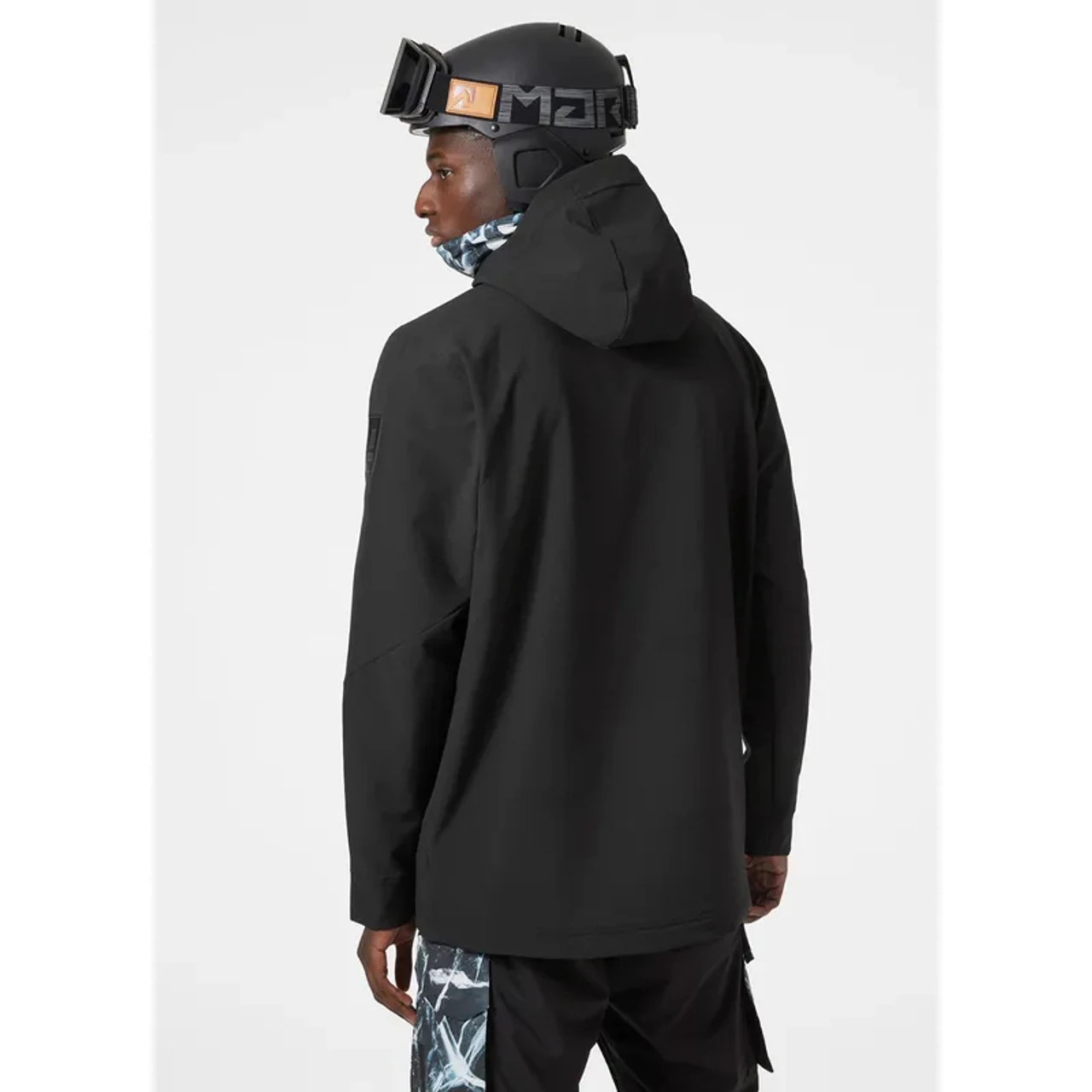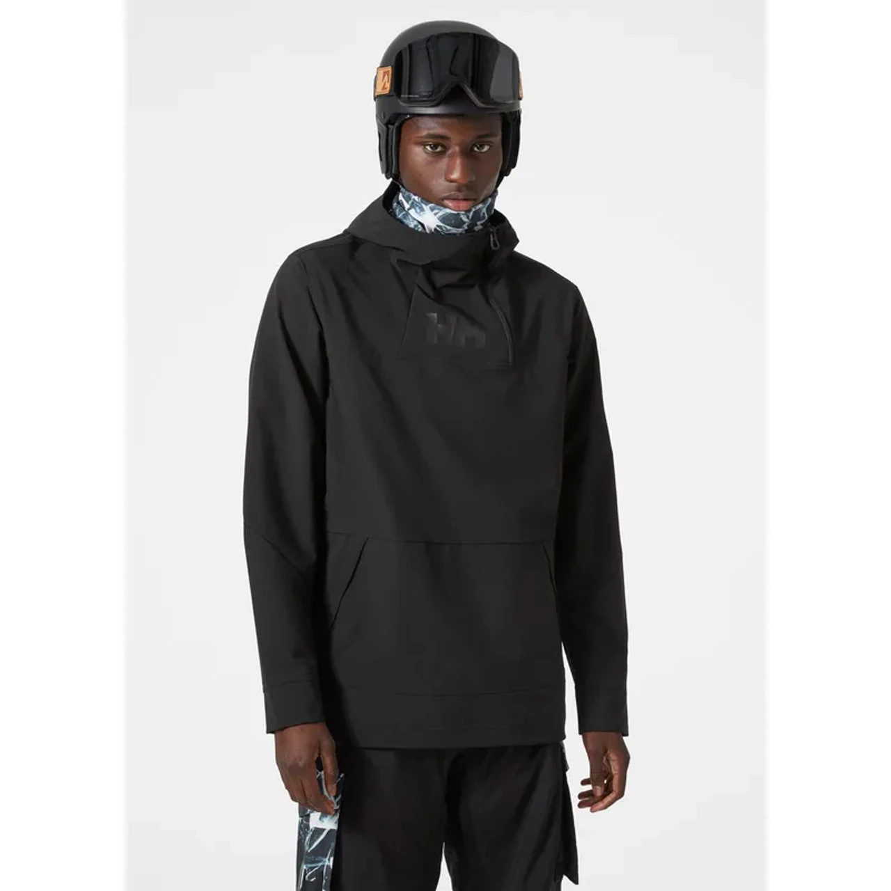 A windproof, water-repellent technical hoodie designed for freeride skiing.