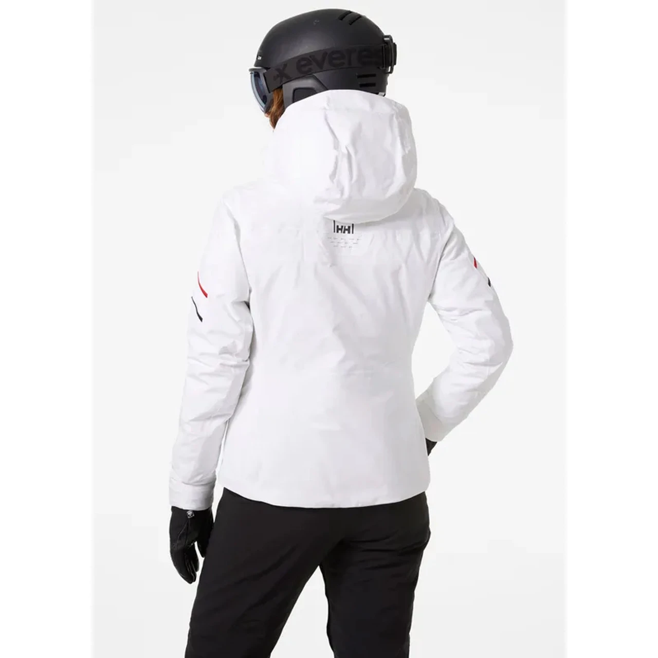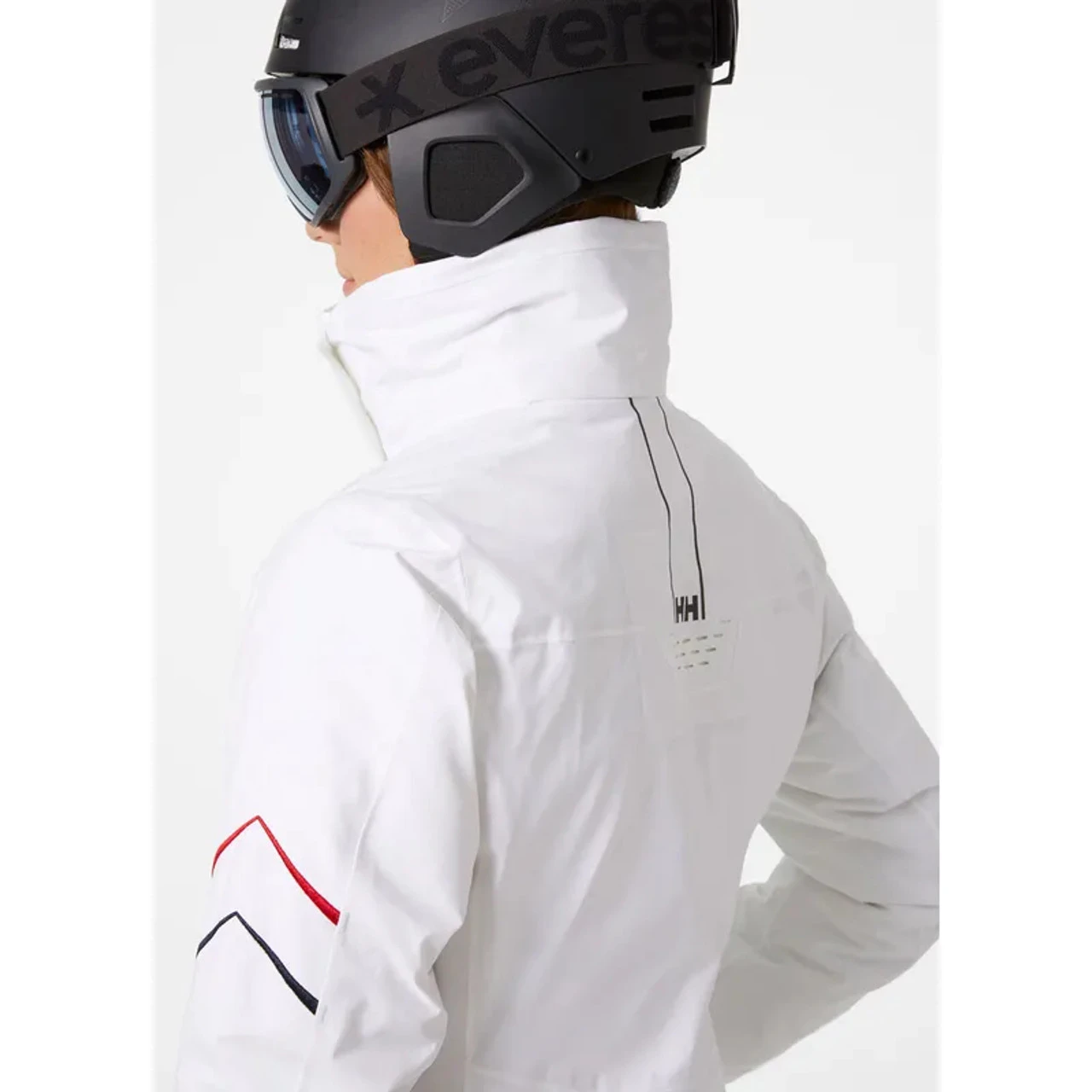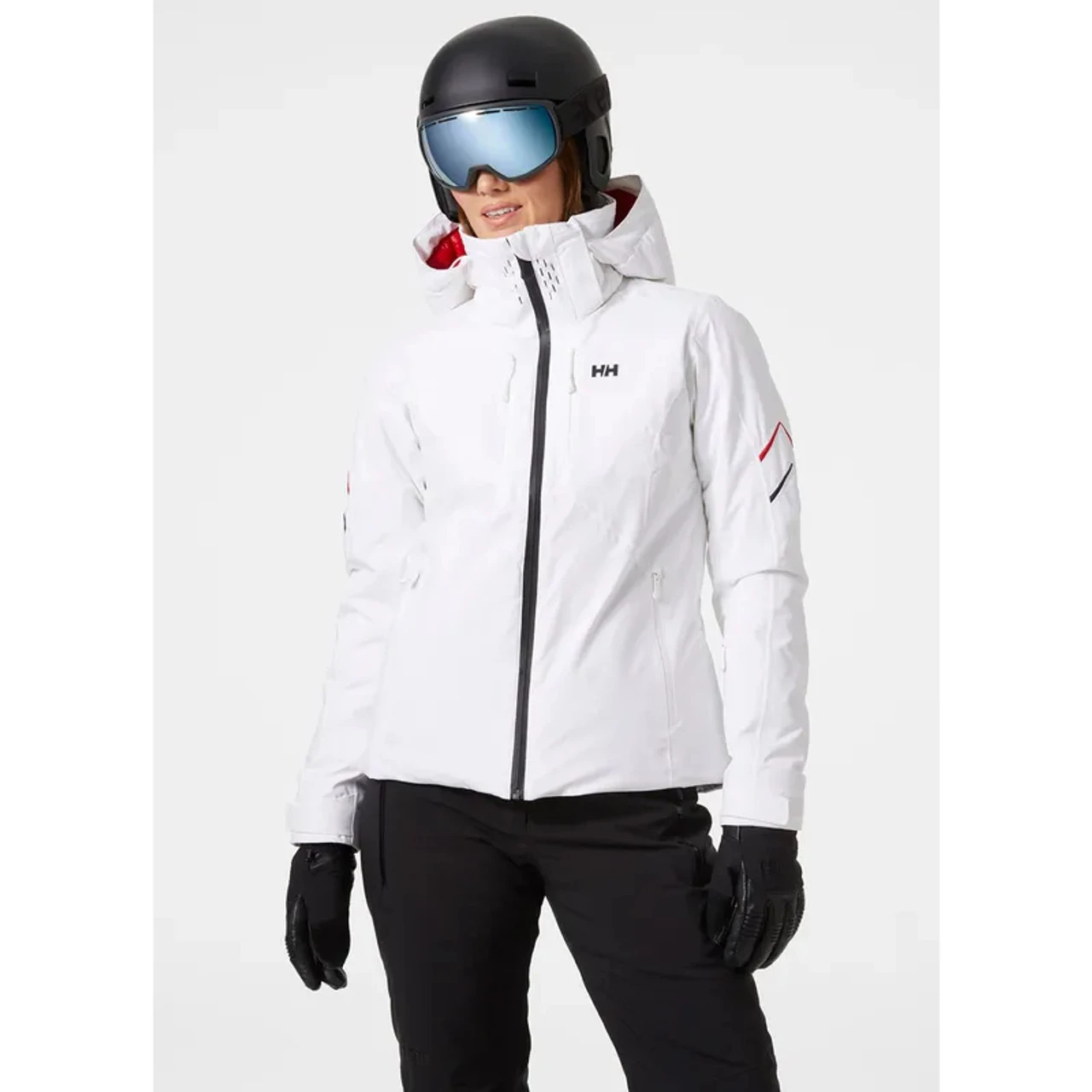 A highly technical, waterproof/breathable women’s ski jacket for a bluebird day on the slopes.