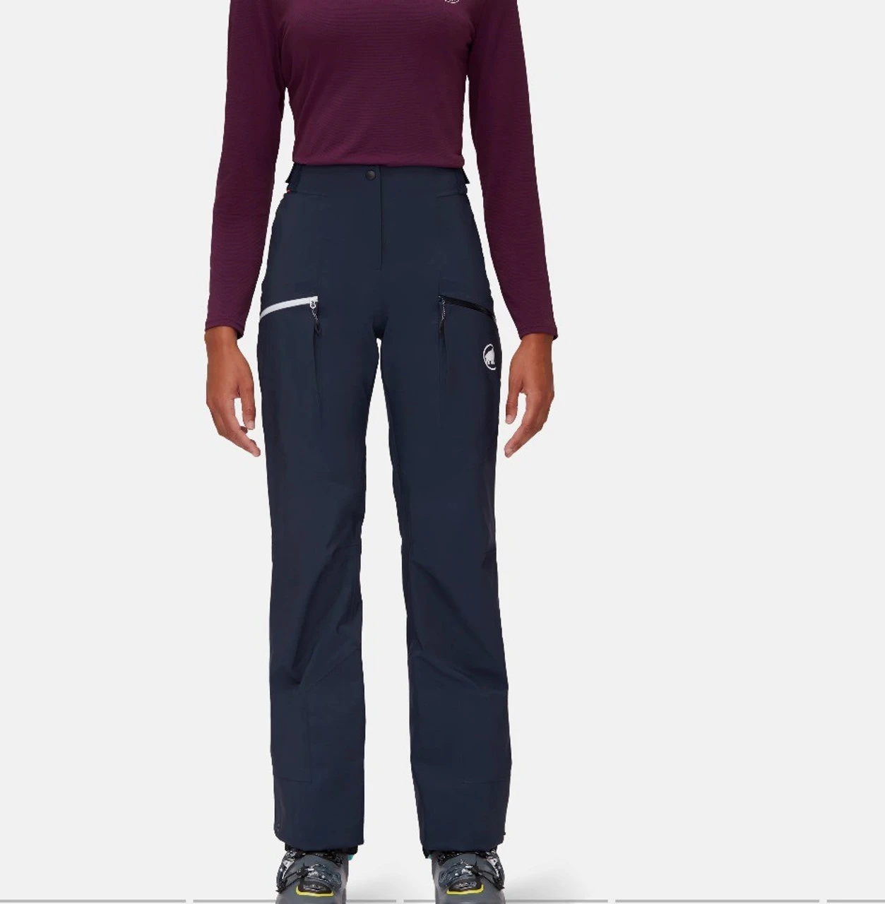- Raised, elasticated rear waistband for protection against powder snow and increased comfot
