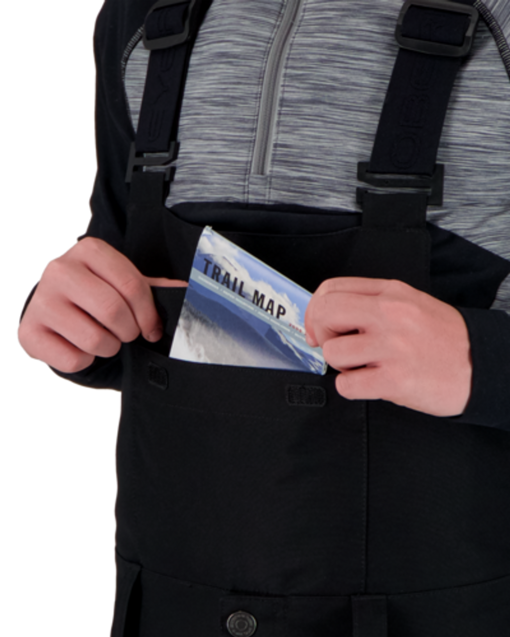 A high front bib with an easy access chest pocket – large enough to stow your phone and keep the batteries warm all day.