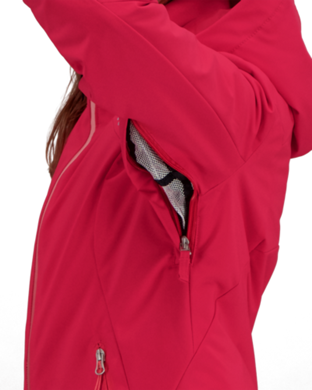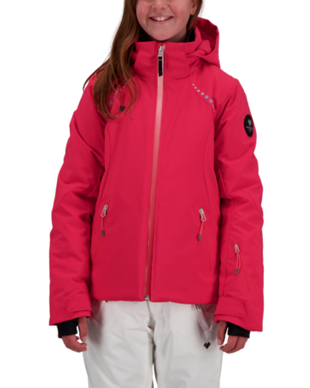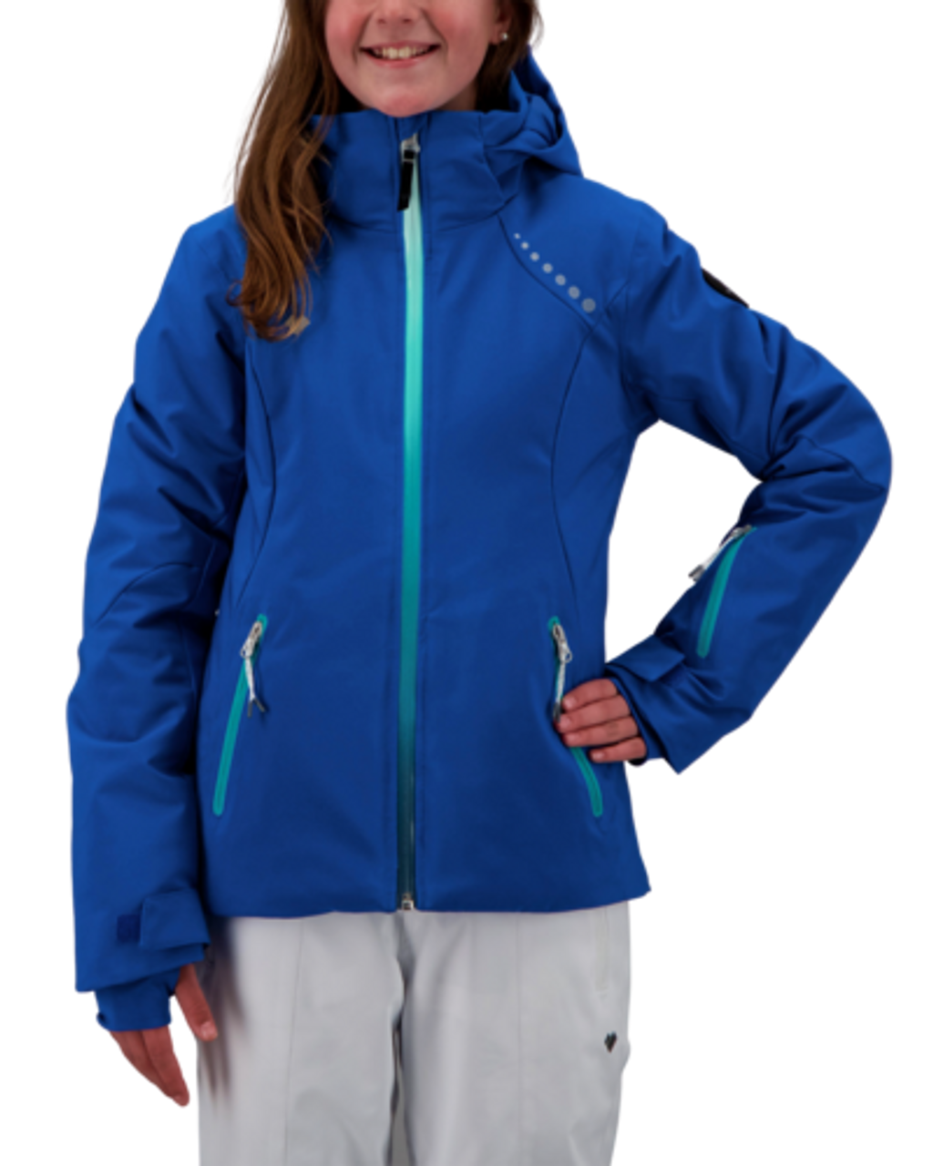 A sporty, short waisted jacket, with innovative features that separate it from the crowd. Its two-way stretch is laminated with our HydroBlock Pro 15,000mm waterproof-breathable technology and features 140gm of insulation. Critical seam sealing, and Snap-Away water-resistant powderskirt prevent any water intrusion. Full-Motion™ stretch articulation enhances the Leia’s pleasing fit. An easy access interior electronics pocket with cord routing guide keeps you well-connected. YKK® Prifa® Ombre front zipper adds a stylish touch.