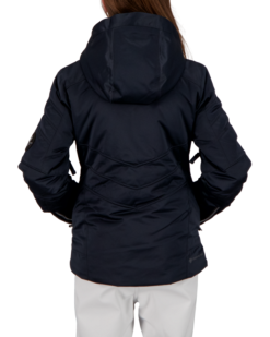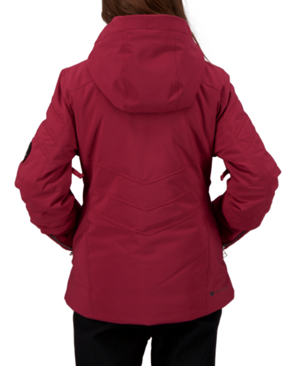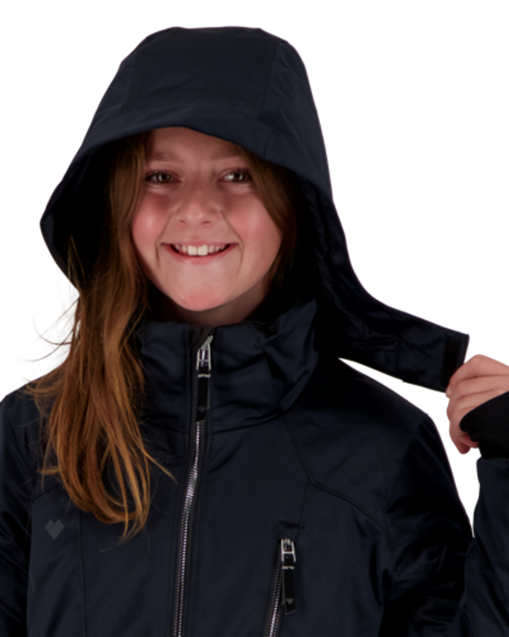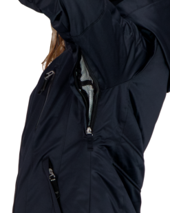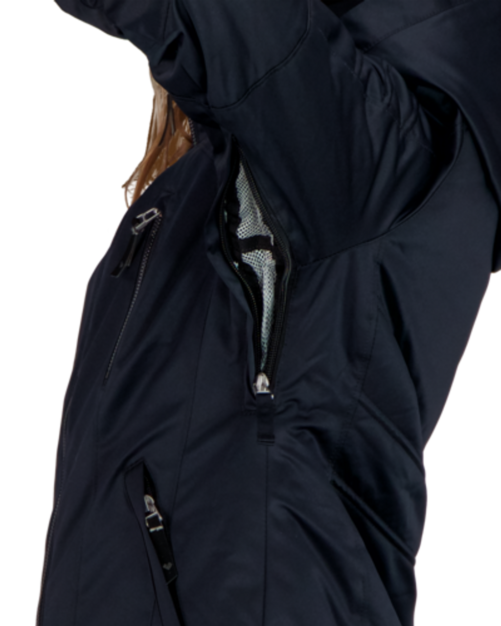 Metaluxe® zippers, shaped cuffs, and faux suede trim highlights. Exceptional weatherproof technology with HydroBlock Pro 15,000mm waterproof-breathable lamination and 140gm stay-dry insulation. Snap-Away powder skirt and removable hood for days around town with friends. Mesh gussets and underarm control zone ventilation regulate variations in temperatures. Secure interior electronics pocket for phone and music.