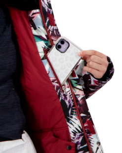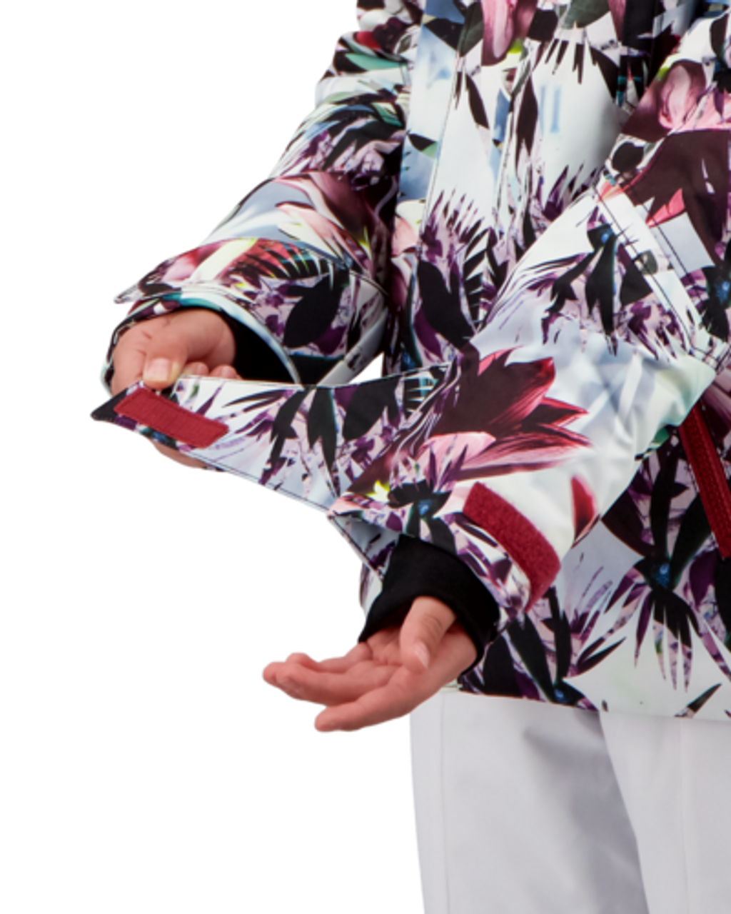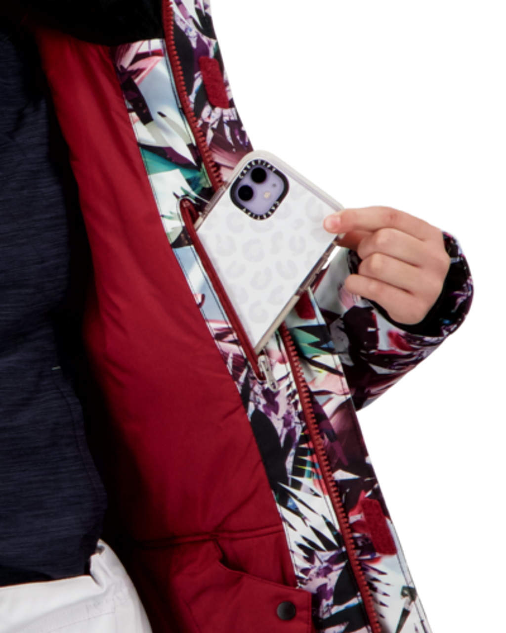 Full-Motion™ articulation allows for unrestricted movement. Shaped hems and cuffs, faux suede trim, and attached hood add to its personality. Handy zippered hand warmer pockets are useful on those chilly days while you are out and about. Colorful and expressive prints create a lively appearance whether on the mountain or in town. Waterproof-breathable 10,000mm protection and 140gm insulation promise to keep you warm, dry, and comfortable. The interior electronics compartment is your go-to pocket for music and texts.