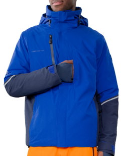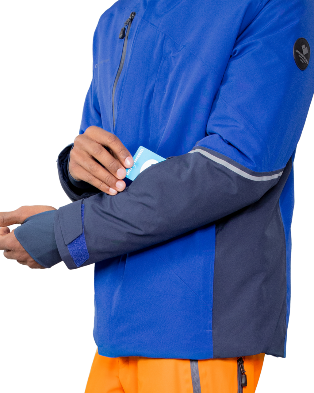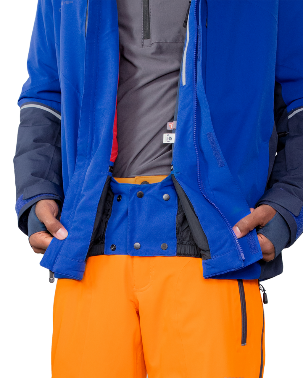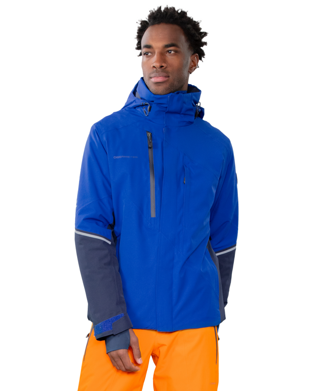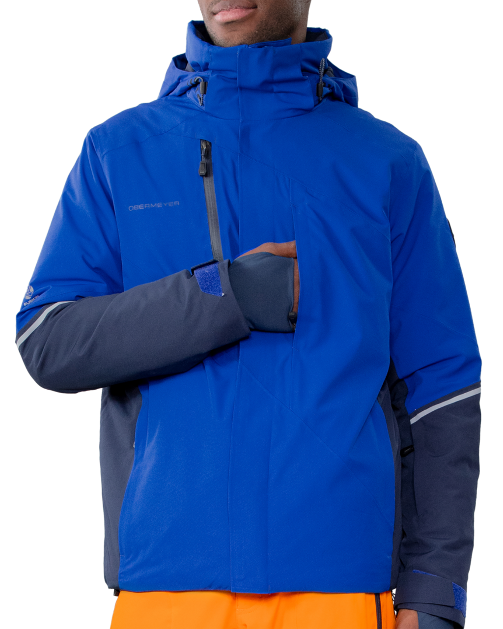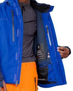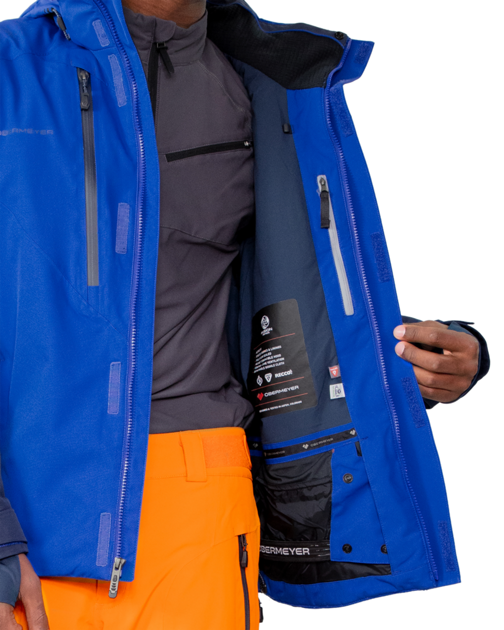 By combining environmentally-friendly PrimaLoft® Black Eco 80gm insulation and REPREVE® recycled construction, the Kenai Jacket is Obermeyer’s eco-friendly jacket made to tackle adventure. Each Kenai Jacket contains the recycled material from 12 plastic bottles. This ski-ready jacket comes loaded with performance features, like an interior windguard, bonded construction, and a helmet-compatible hood. When the snow starts falling and the wind starts howling, a fleece-lined collar and windguard keep you at your best. HydroBlock® Elite 30k/30k waterproof/breathable fabric and a Snap-Away™ water-resistant powderskirt protect against moisture on the mountain’s wettest days.