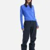 Center-front zipper has zipper garage at chin for next-to-skin comfort