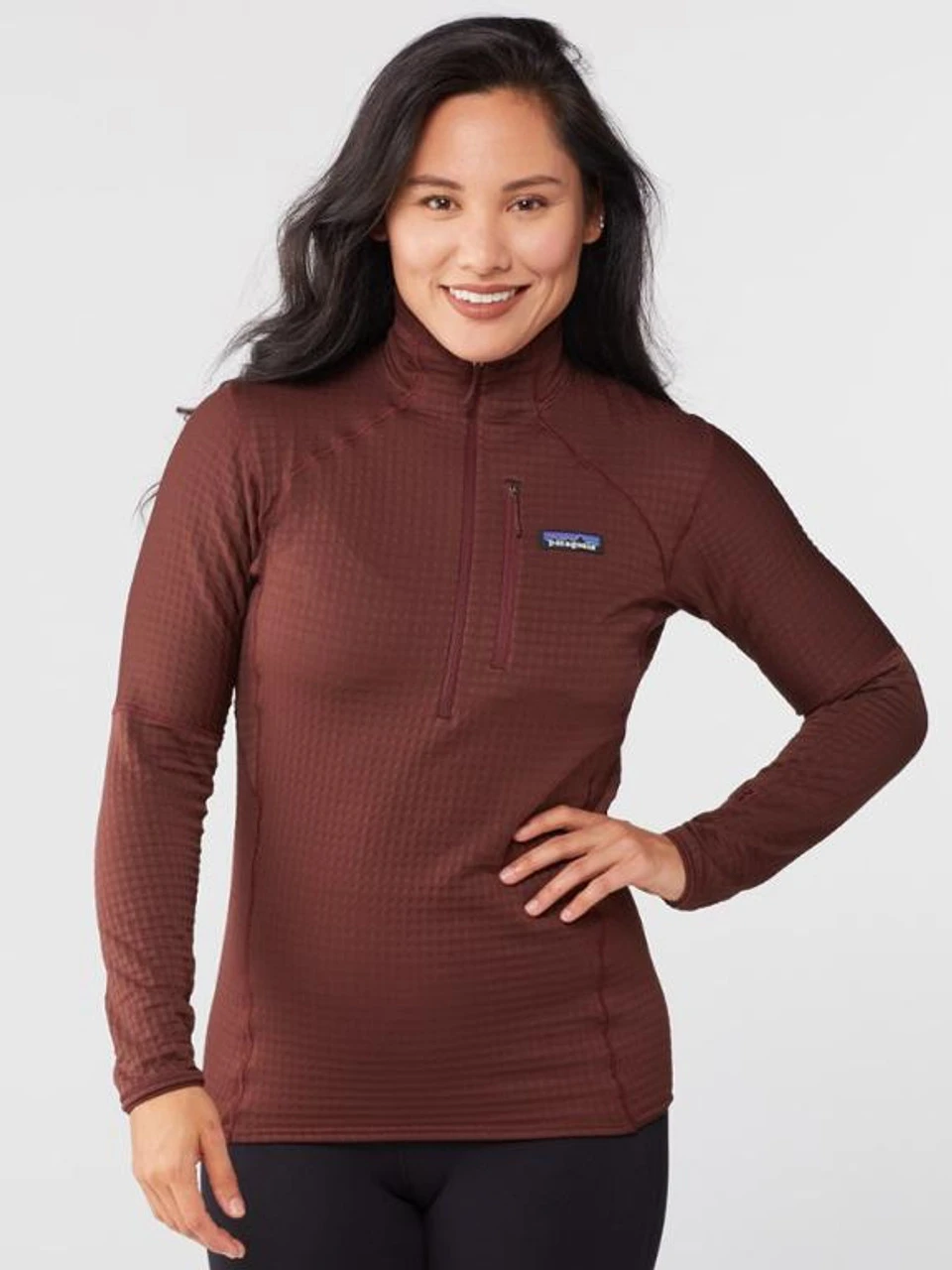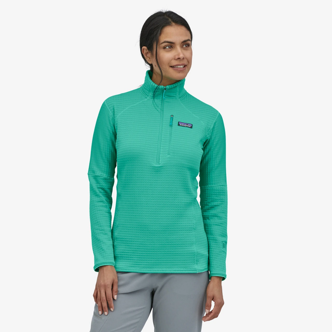 Simplicity, adaptability, and versatility rule at the crag. Our R1® Pullover maintains a similar focus, with a durable, finely tuned high/low interior grid polyester fabric (Polartec® Power Grid™) that warms, stretches, moves moisture and insulates—recently redesigned exclusively for Patagonia to be even lighter and more breathable. Its technical fit accommodates light underlayers or works as a stand-alone top, and it squashes down to practically nothing in your pack. With simple cuffs; a smooth, microfiber face for easy layering; raglan sleeves for pack-wearing comfort; a zippered chest pocket; and Polygiene® permanent odor control.